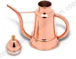 Almotolia de cobre de alta qualidade. Esta almotolia de cobre encontra-se disponível em dois tamanhos (0,50L e 1L) e é estanhada interiormente.