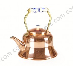 Chaleira de Cobre Lisa de qualidade com cabo de procelana, estanhada interiormente e com uma capacidade de 2L.