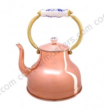 Chaleira de Cobre Lisa de qualidade com cabo de procelana, estanhada interiormente e com uma capacidade de 1,5L.