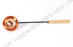 Colher tradicional com a concha em cobre lisa, cabo em ferro e pega em madeira. O prazer da velha tradição.