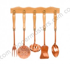 Conjunto de cozinha decorativo de 5 peças em cobre de alta qualidade com cabo e régua de madeira. Para dar um novo visual á sua cozinha.